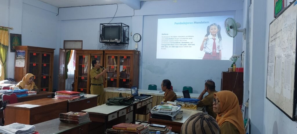 Senin, 11 Juli 2025, dalam rangka memperdalam kedalaman ilmu siswa, SMP Negeri 1 Selogiri menyelenggarakan pelatihan pendekatan Pembelajaran Mendalam yang dilaksanakan secara luring. Pelatihan tersebut merupakan serangkaian kegiatan lanjutan dari diklat PM yang diikuti oleh narasumber sebagai bentuk pengimbasan kepada sekolah. Yang bertindak sebagai narasumber adalah Drs. Agus Joko Sumarno, M.Pd, Sabar Sumarwanto, S.Pd, Sri Hartono, S.Pd, dan Bowo Nurcahyo, S.Sn. Kegiatan tersebut dilaksanakan di ruang guru pada pukul 12.00 (setelah jam KBM selesai dilaksanakan) hingga selesai. Kegiatan ini dibuka oleh Kepala SMPN 1 Selogiri. Moderator sekaligus narasumber ke-3 diisi oleh Sri Hartono, S.Pd. Setelah pembukaan selesai kemudian dilanjutkan oleh paparan materi dari ketiga narasumber secara bergiliran.